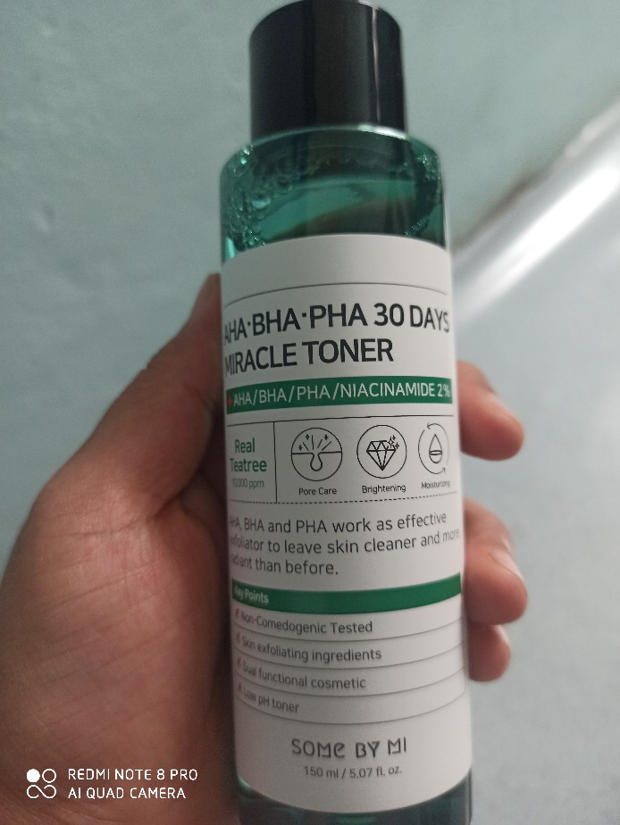 Kemasan, kandungan, dan klaim some by mi aha/bha/pha 30 days miracle toner merupakan acid / exfoliating toner yang memadukan tiga jenis.