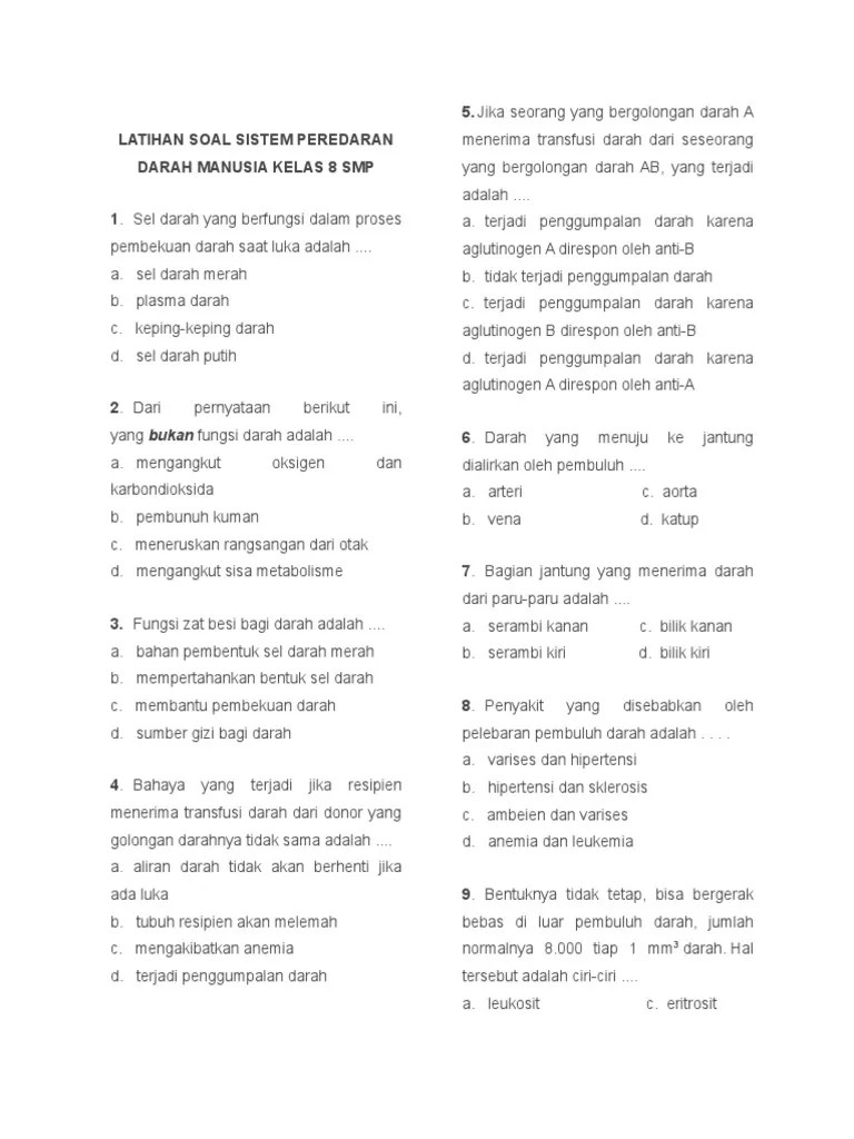 Nah, berikut ini ada beberapa latihan soal pts dan pembahasannya untuk kamu. Besaran dan satuan zat dan. Penggunaan media prezi pada materi sistem peredaran darah manusia dapat. Materi sistem peredaran darah manusia. Sistem peredaran darah sistem ekskresi manusia sistem reproduksi manusia . Berdasarkan masalah (pbl) terhadap keterampilan berpikir tingkat tinggi (hots) pada konsep sistem peredaran darah. Nilai = betul x 1. Tabel 4 telaah materi sistem peredaran darah. Seseorang menderita gangguan pada sistem peredaran darah. Soal ini termasuk soal hots karena :. Serta cara memelihara kesehatan organ peredaran darah manusia. Materi latihan soal dalam buku ini antara lain: Latihan soal ipa sistem peredaran darah kelas 8 smp k13 ringkasan materi a.